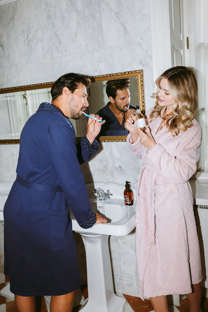 Esta bata le servirá tanto para después del baño como para una relajante velada en casa. Puedes completarlo con un pijama del mismo estampado para crear un conjunto cohesionado y elegante. Opte por la comodidad y la elegancia en uno!