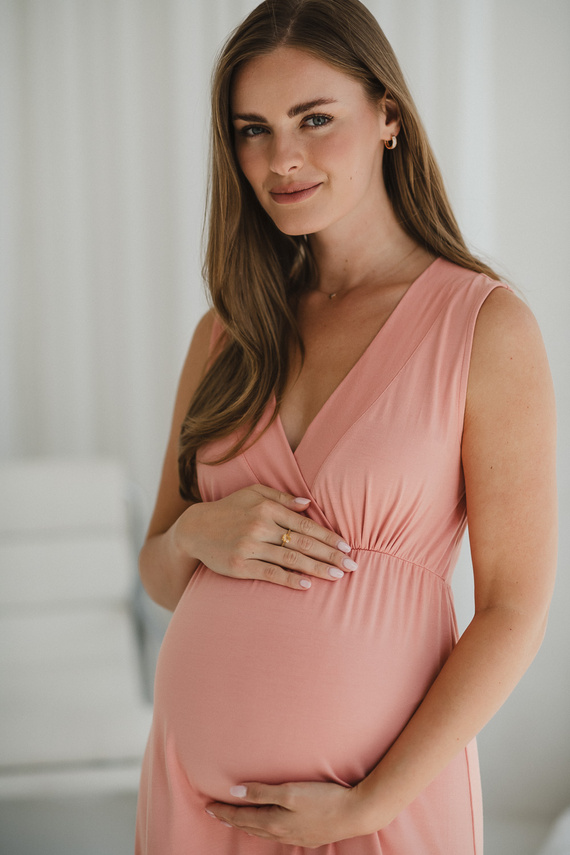 El camisón Star Light Herbal Rose está pensado para embarazadas y madres lactantes que valoran la comodidad, la funcionalidad y una sutil elegancia. Hecho de viscosa de bambú (92%) con elastano añadido (8%), es excepcionalmente suave, elástico y agradable al tacto. Gracias a las propiedades naturales del bambú, el material transpira perfectamente, regula la temperatura corporal y es suave incluso con las pieles sensibles.