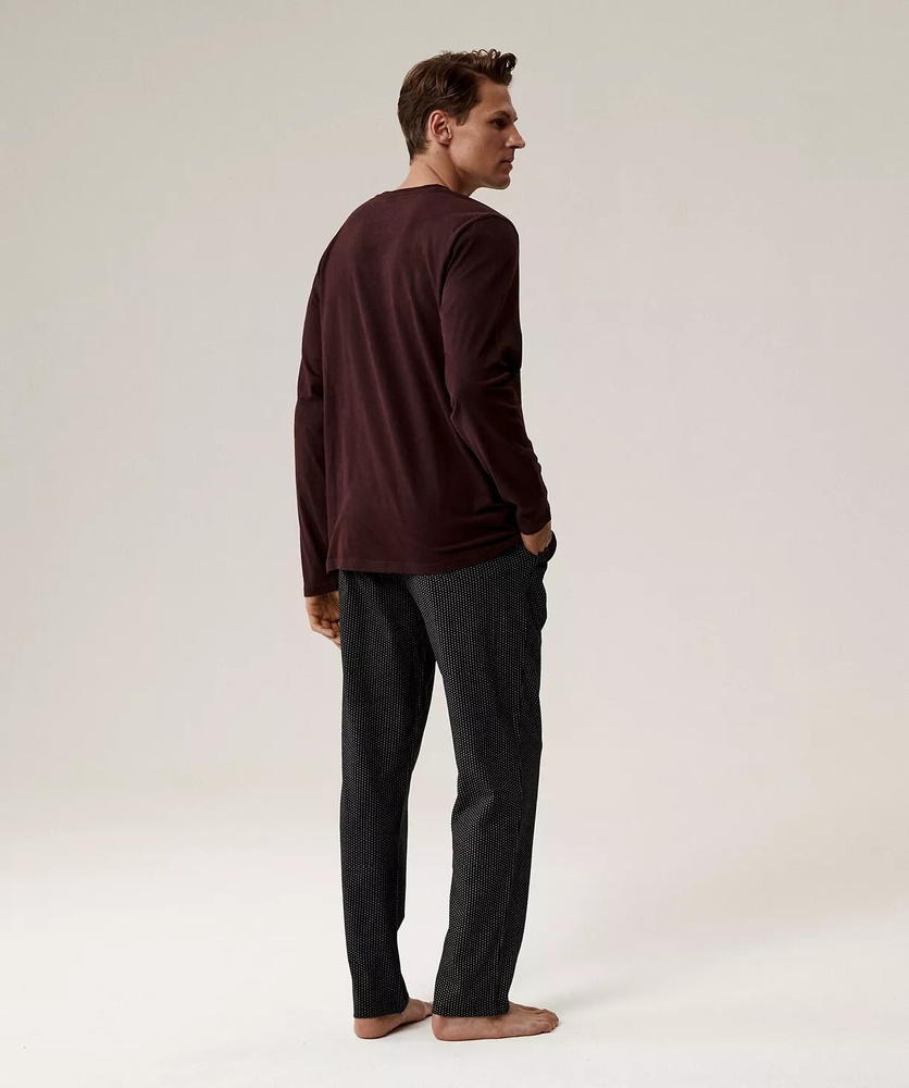 Pijama de hombre NMP-389 Atlantic - algodón vino, manga larga, elegante conjunto para las noches frías
