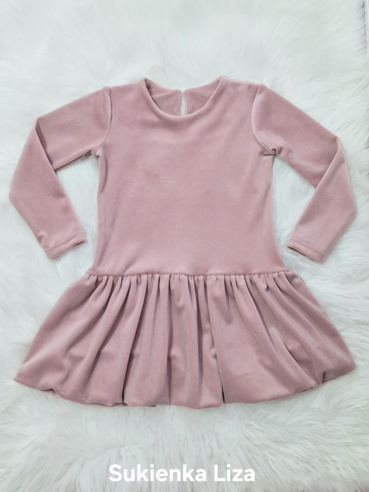 Vestido de terciopelo rosa ahumado para niña Liza Bambarillo - elegante y cómodo