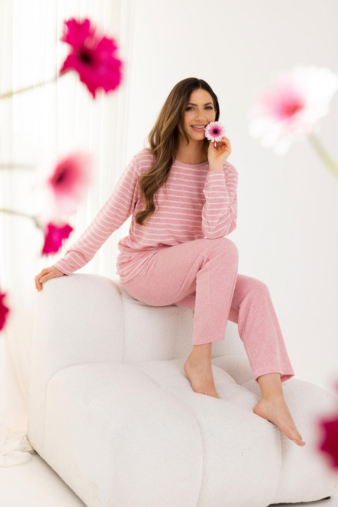 713 Pijama señora Regina rosa - rizo cálido, rayas, manga larga