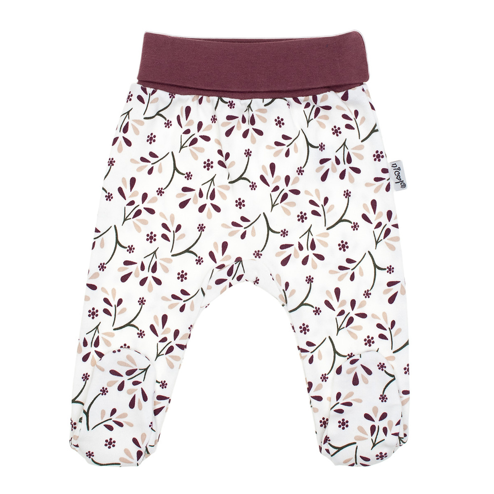 La ancha cintura elástica no comprime la barriga y los pies cosidos protegen las piernecitas del frío, eliminando la necesidad de llevar calcetines adicionales. El precioso estampado floral confiere a la prenda un encanto especial.