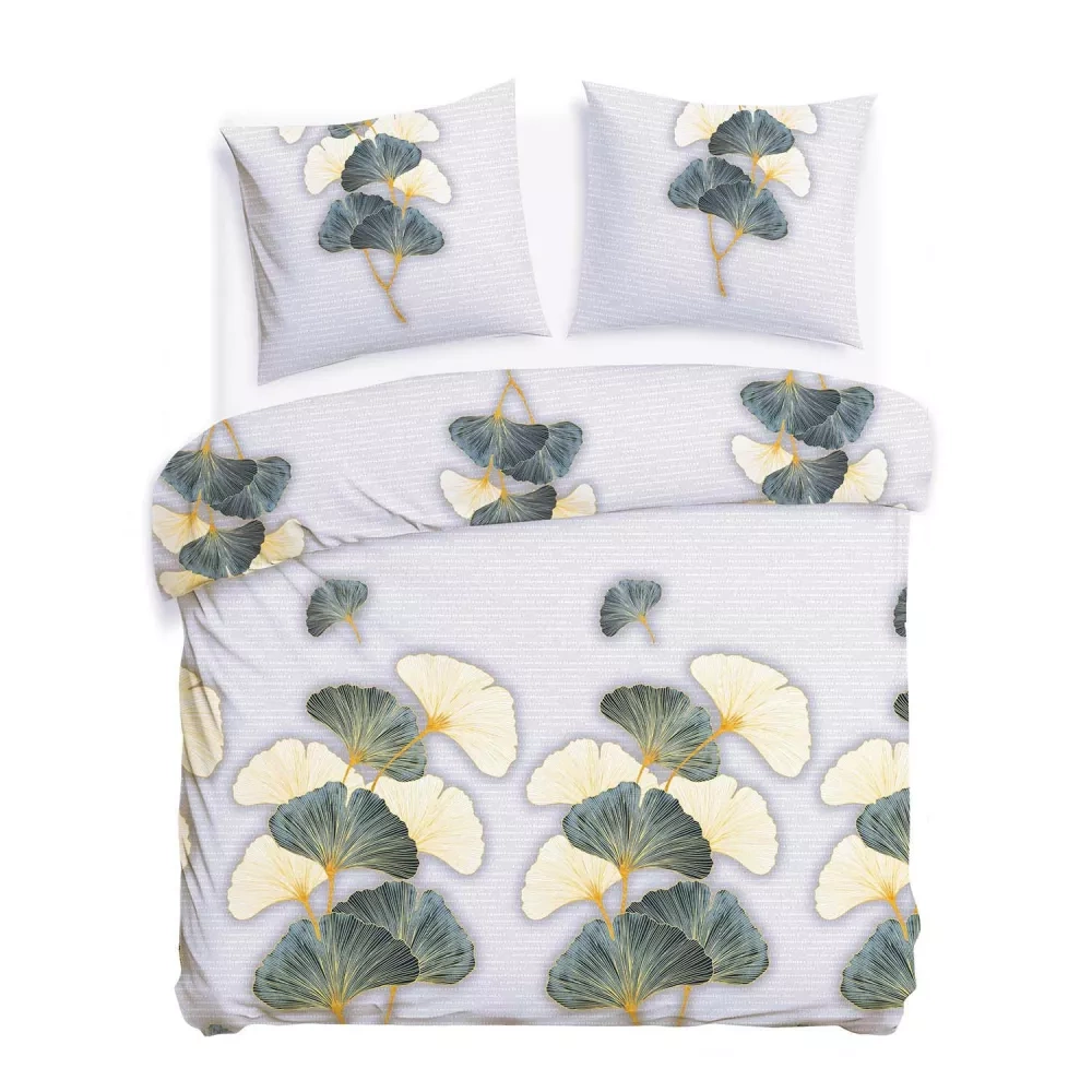 31510/1 Flannelove Darymex gris verde hojas de ginkgo- conjunto, 100% algodón, cálido y suave