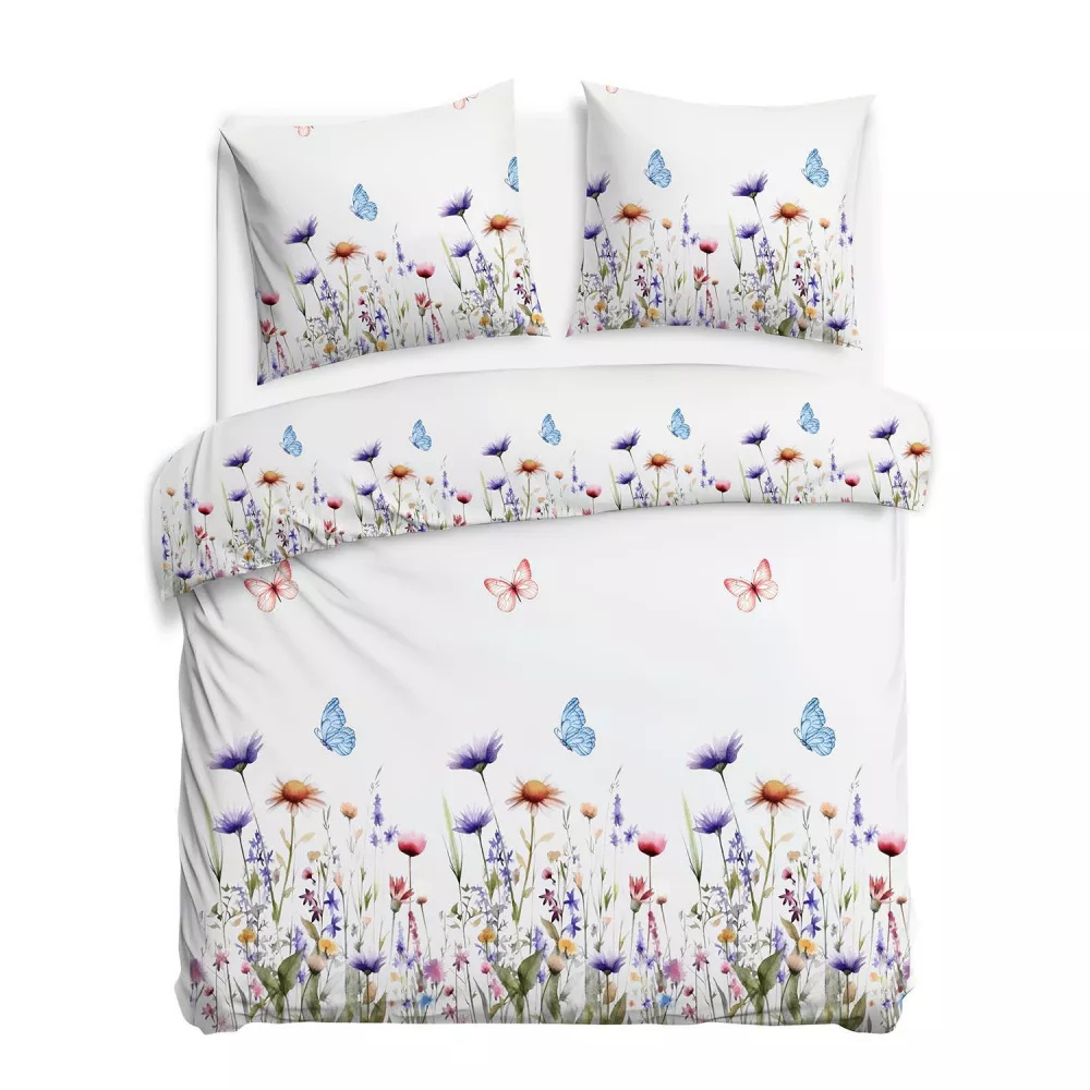 31512/1 Juego de cama de franela Flanelove Darymex blanco flores de colores, 100% algodón, cálido y suave