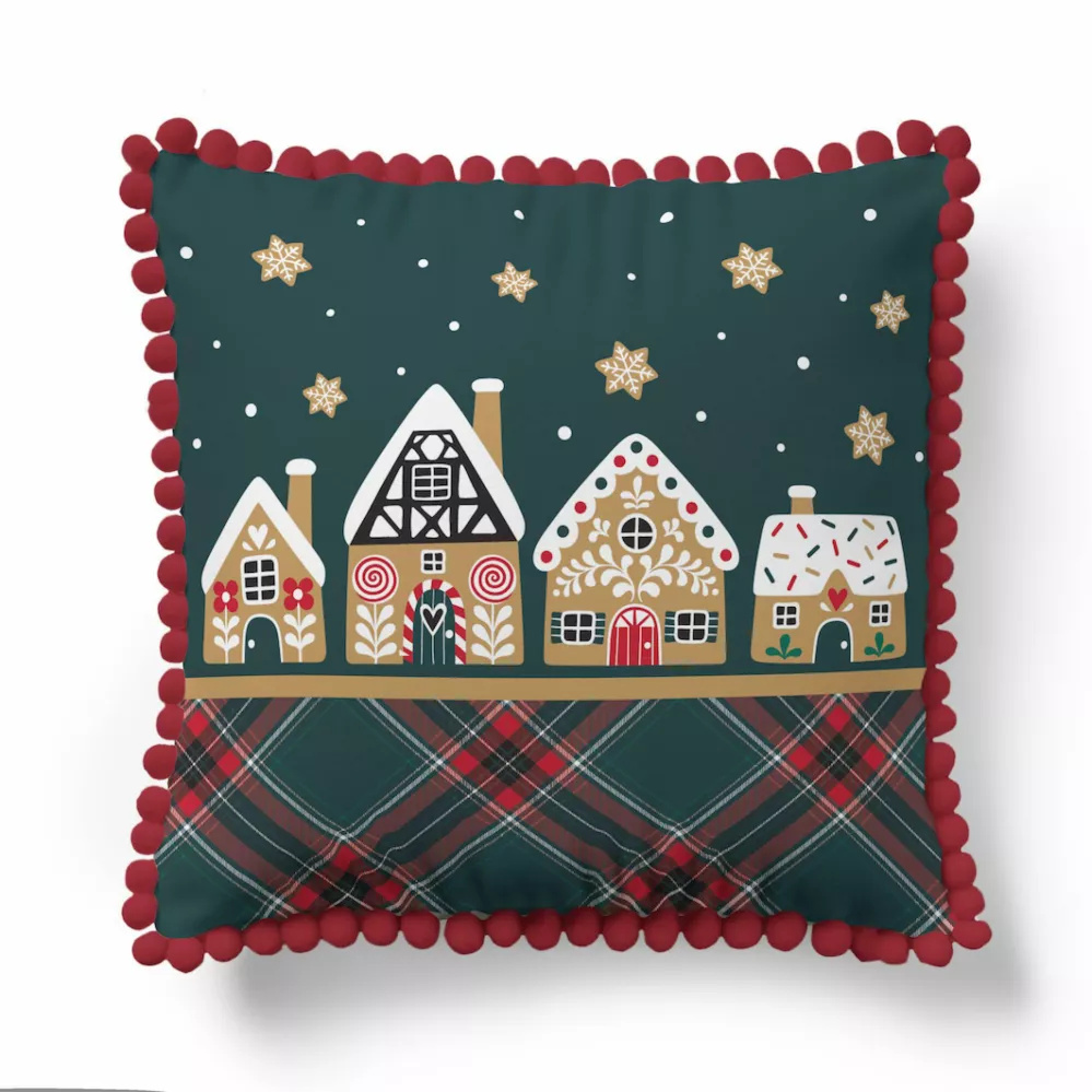 5379 Una Navidad funda de almohada decorativa Navidad Deco Detexpol casa de pan de jengibre y las estrellas - zip