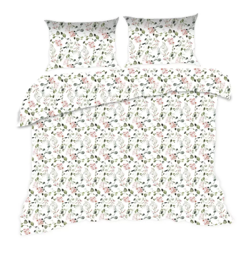 1610N Ropa de cama de algodón Classic E24 Karo flores polvo blanco- 100% algodón, duradero, colorido, juego de 2 piezas