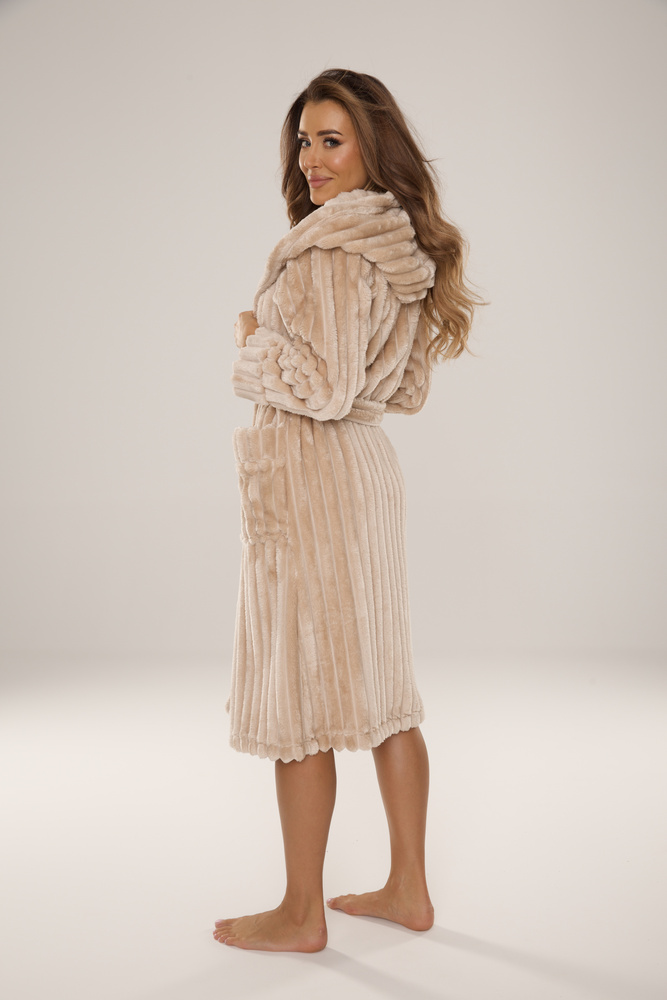 La bata de mujer Sutton 887 De Lafense es la elección perfecta para las mujeres que aprecian la comodidad y la elegancia en un ambiente hogareño. De tejido suave y agradable al tacto, envuelve el cuerpo como una manta mullida. Provisto de una práctica capucha y un cinturón para anudarlo a la cintura, garantiza comodidad y un ajuste perfecto a la figura. La longitud por debajo de la rodilla garantiza que la bata proporcione un confort térmico total a la vez que resulta muy femenina.