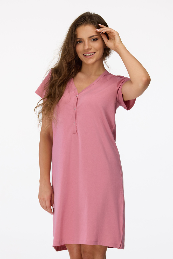 no. 20 Camisón de embarazada Senizo rosa antiguo - 100% algodón, manga corta, lactancia abotonada