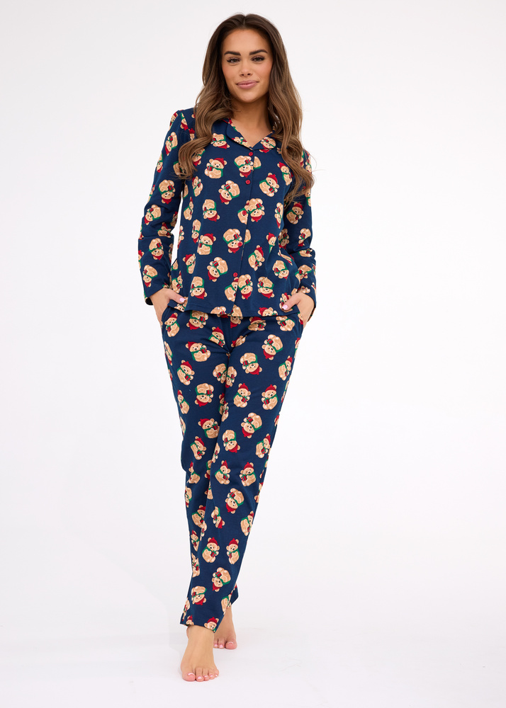 • Pijama de señora Cornette Teddy 5 482/459. 100% algodón, azul marino, camisa con botones, pantalón largo, caja de regalo.