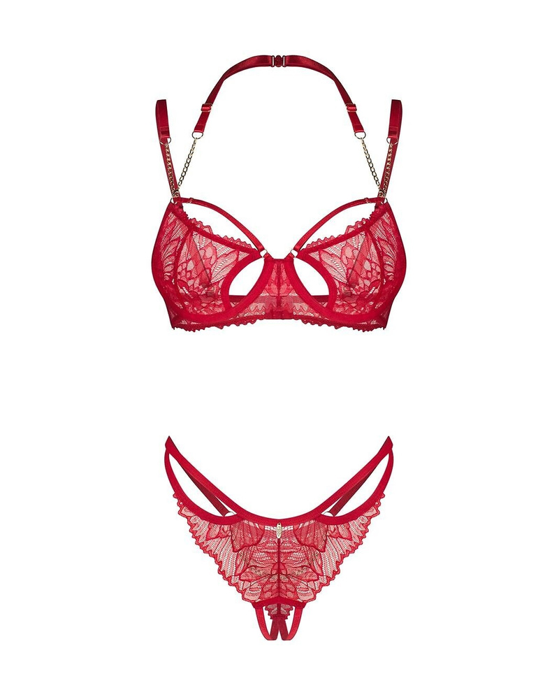 • Conjunto sensual Obsessive Matildea: sujetador con aros y tanga abierto. Ribete de encaje, cierre en la espalda.