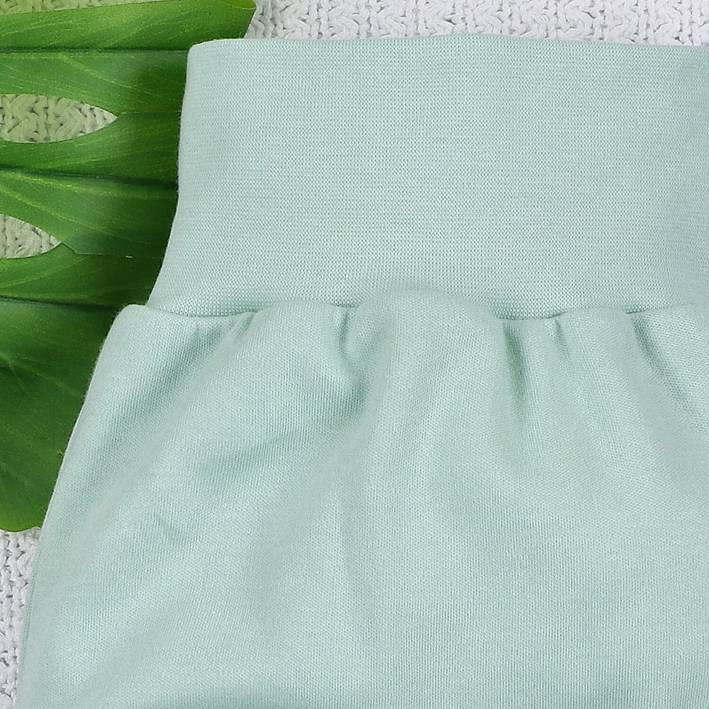 La ancha cintura elástica es cómoda y no presiona la barriga, y los pies incorporados protegen las piernas del frío, sin necesidad de calcetines adicionales. El material natural permite que la piel respire y no causa irritaciones.