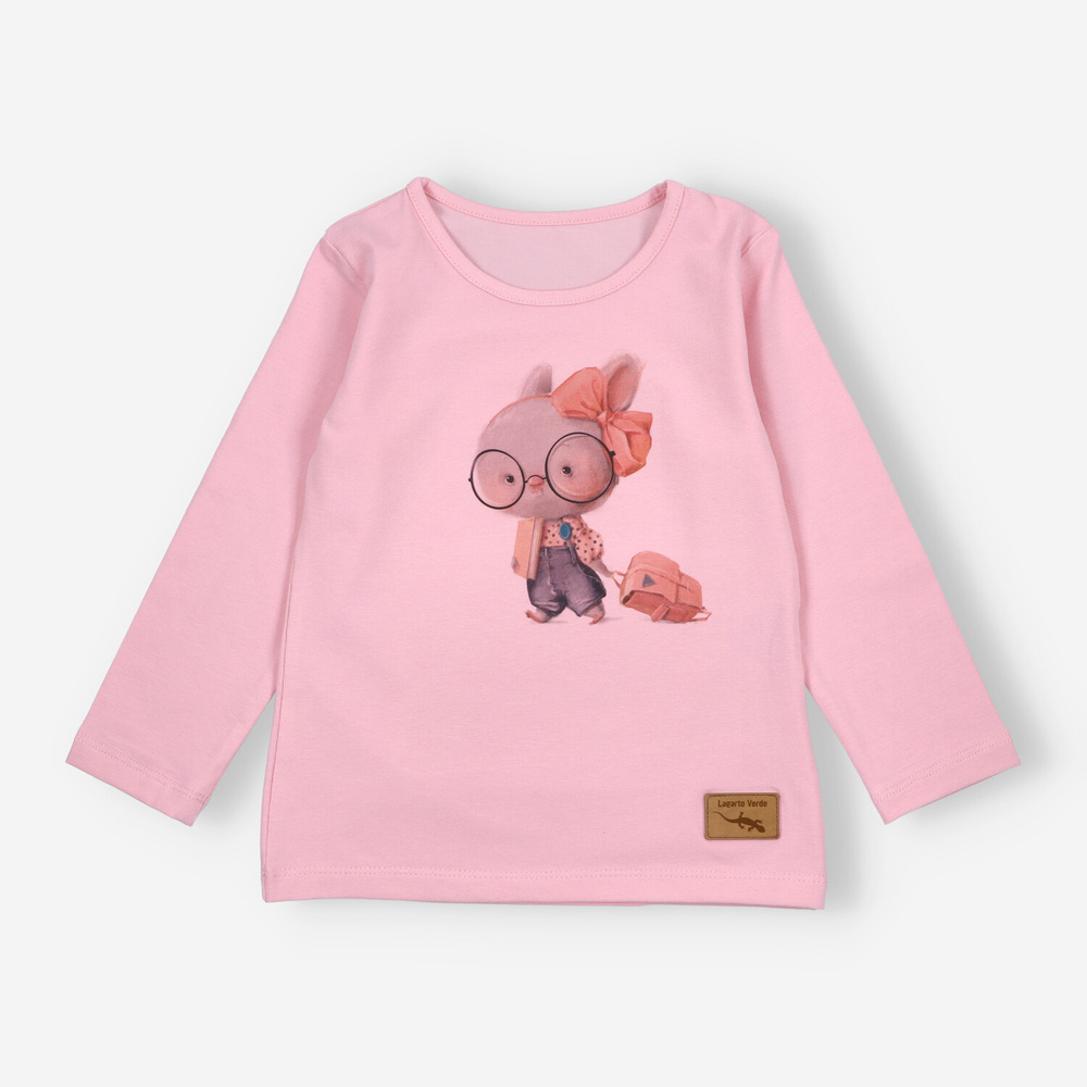 KAR-3011 Blusa de manga larga para niña Lagarto Verde rosa - elegante, algodón, producción polaca