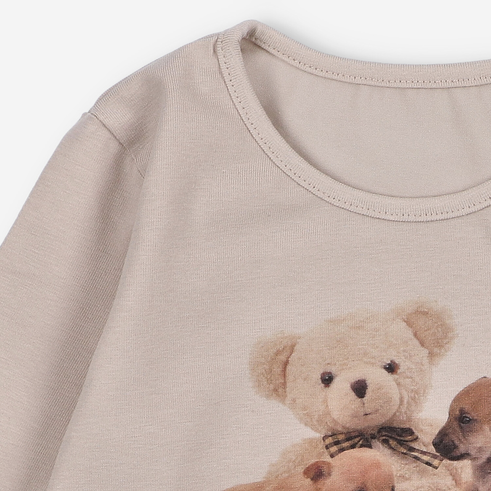 KAR-3005 Blusa de manga larga para niña Lagarto Verde beige - elegante, algodón, producción polaca