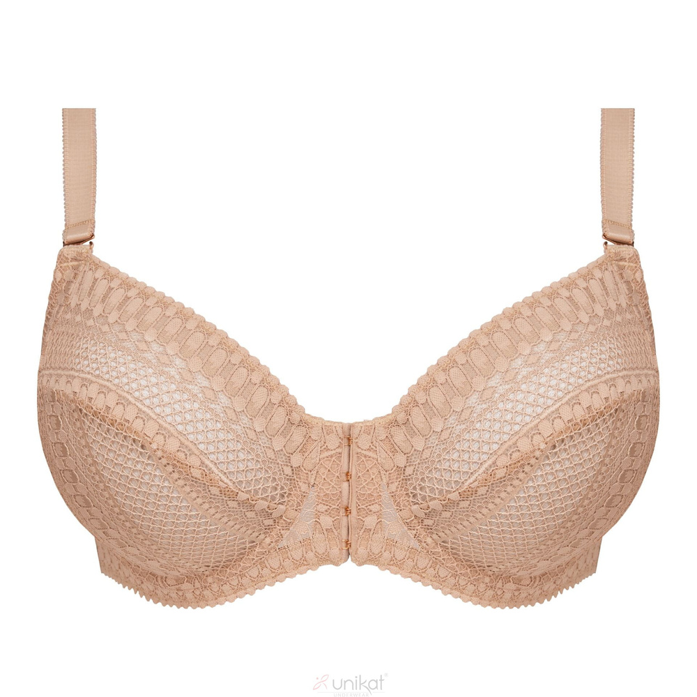 - Cómodo sujetador suave de Unikat en un clásico color beige. Cómodo cierre frontal, construcción delicada y estética sutil: la elección perfecta para el día a día.