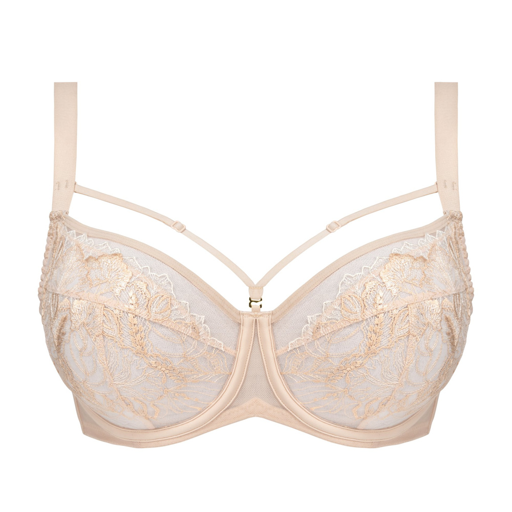 Los tirantes decorativos colocados en el escote añaden un toque moderno y sensual al sujetador, acentuando el estilo femenino del. El tono beige hace que el modelo quede discreto bajo la ropa clara, a la vez que resulta especialmente llamativo.