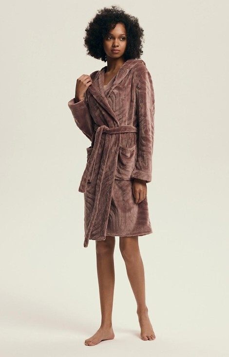 Descubre un confort excepcional con el albornoz para mujer 43602 Devyn Henderson. Este modelo corto con práctica capucha se ha confeccionado íntegramente en un punto suave y agradable al tacto, perfecto para abrigarte y mantenerte caliente en los días de otoño e invierno.