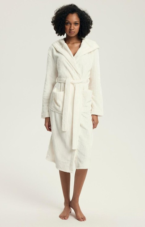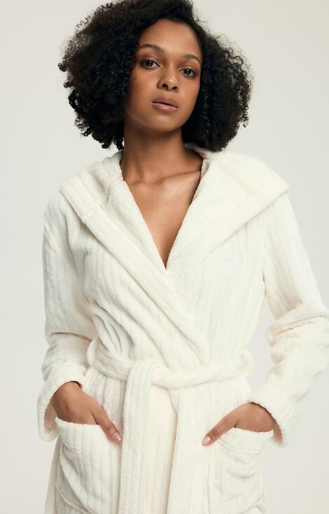 43600 Dionne Bata de mujer con capucha Henderson crema - suave, larga, acanalada