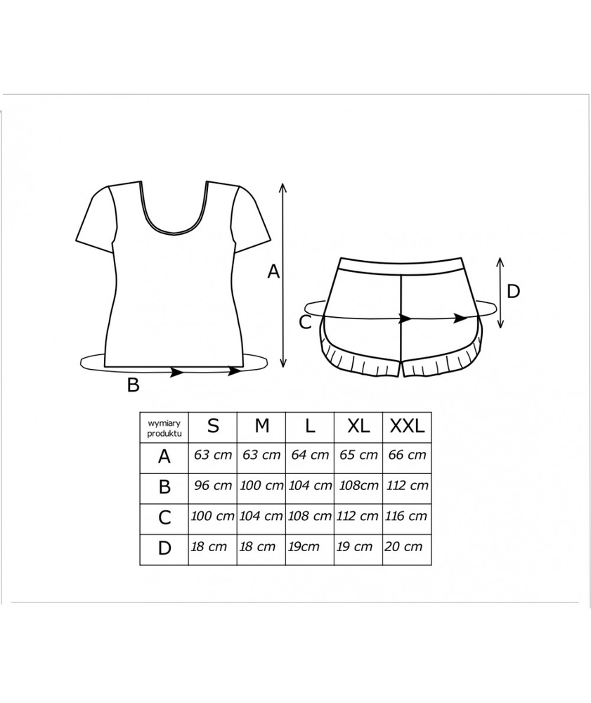 Esta camiseta de manga corta y escote redondo está decorada con un motivo festivo que aporta un alegre ambiente invernal. El conjunto va acompañado de unos shorts cortos y lisos, cuyas perneras están rematadas con un sutil volante. Un lazo de satén en la cintura añade un toque femenino.