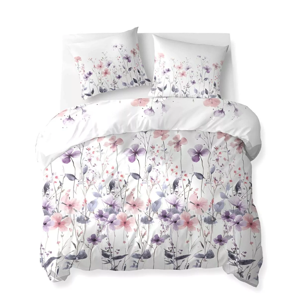 5773 B Algodón Bloom Detexpol ropa de cama blanca con flores de campo rosa y púrpura - 100% algodón, doble cara, producción polaca