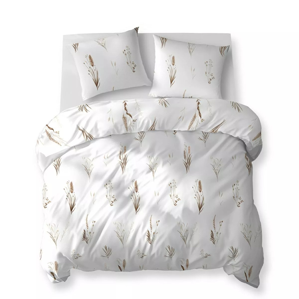 5771 B Algodón Bloom Detexpol ropa de cama blanco con hierbas y marrón y beige tussock - 100% algodón, doble cara, pulido hecho