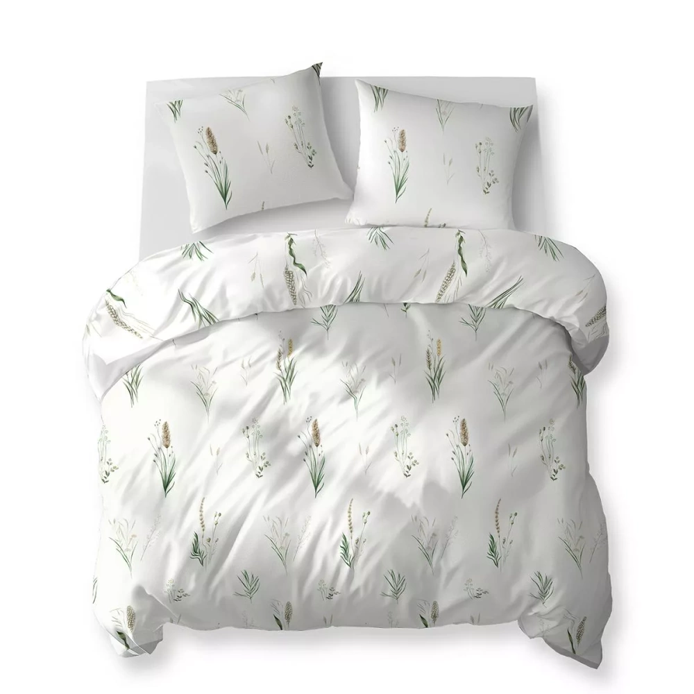 5771 A Cotton Bloom Detexpol Ropa de cama blanca con hierbas y espigas - 100% algodón, doble cara, producción polaca