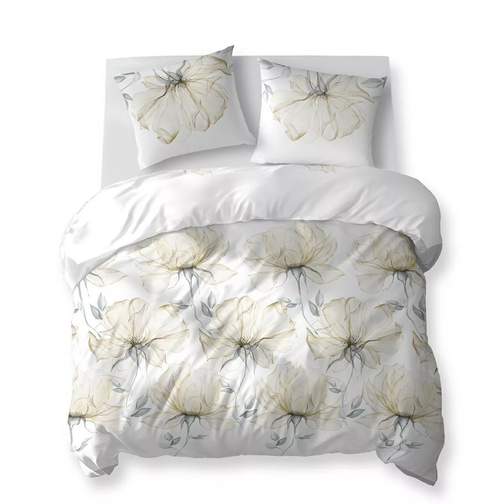 5770 B Algodón Bloom Detexpol ropa de cama blanca con grandes flores de color crema - 100% algodón, reversible, producción polaca