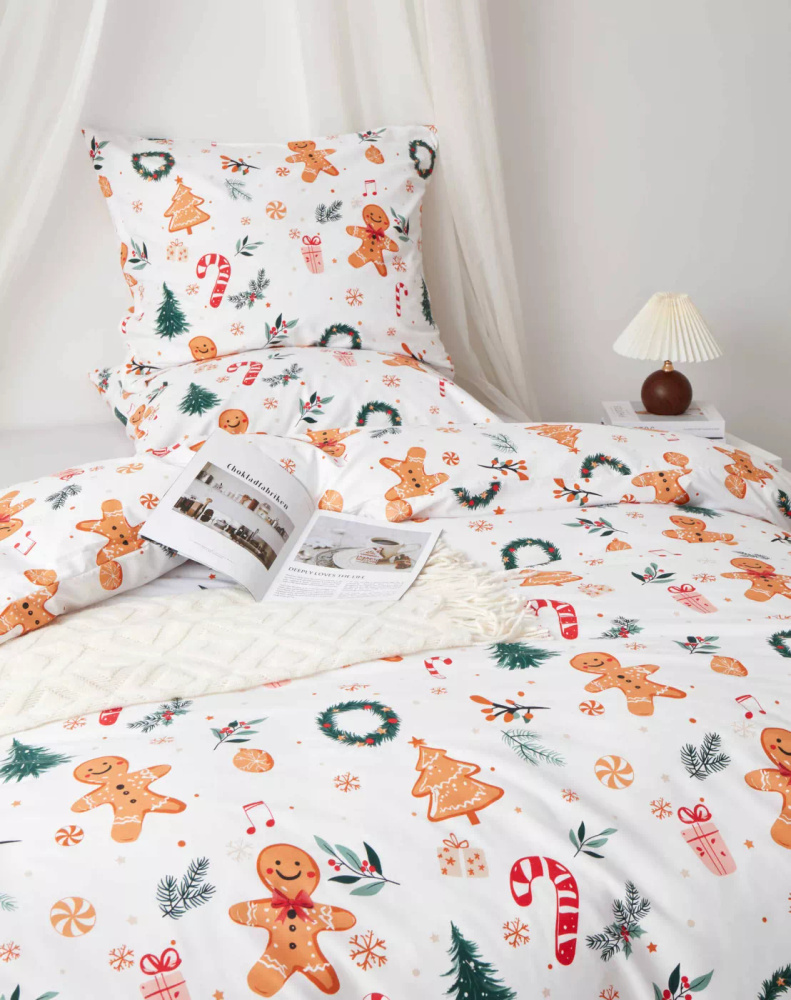 El tejido es suave, transpirable y resistente a las arrugas, por lo que resulta cómodo de llevar y fácil de cuidar. El estampado navideño aportará un ambiente cálido y alegre a tu dormitorio y añadirá un encanto especial al interior.