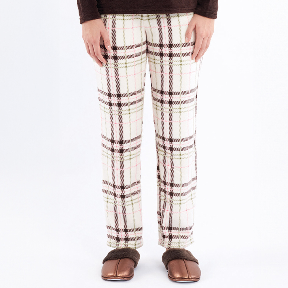 Pijama Liliana Sorbetto marrón - cálido polar a cuadros con bordados