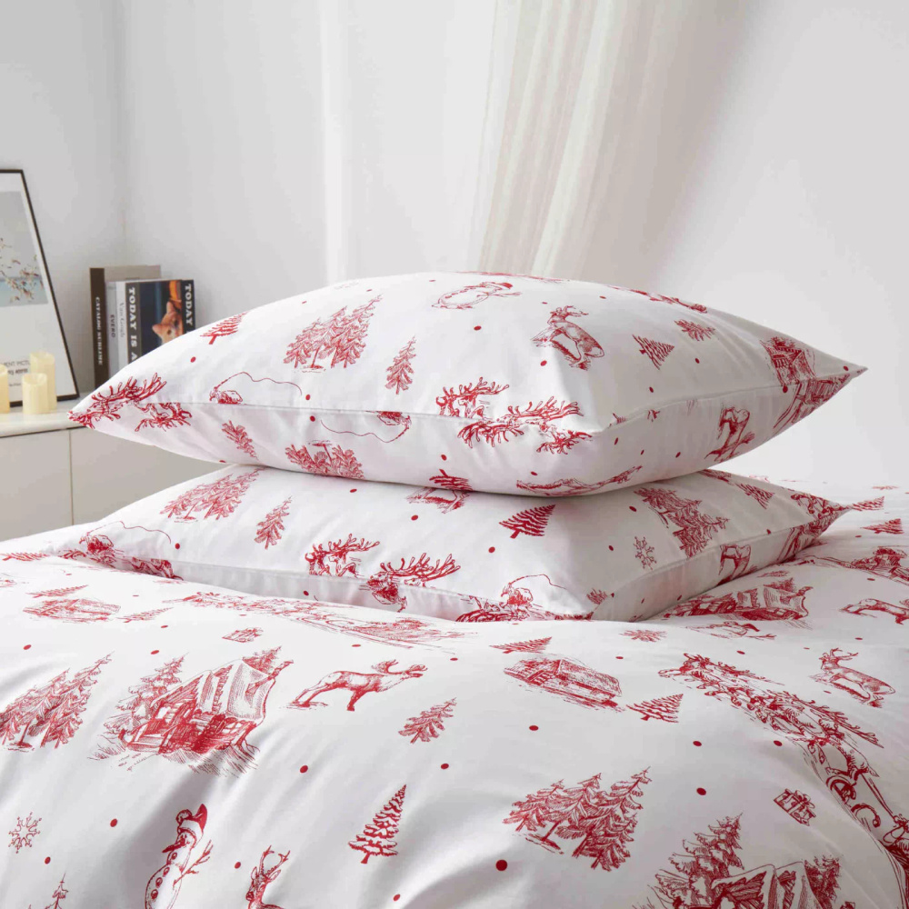 Laponia Navidad ropa de cama de satén de algodón Spod Igły i Nitki blanco rojo - elegante y suave