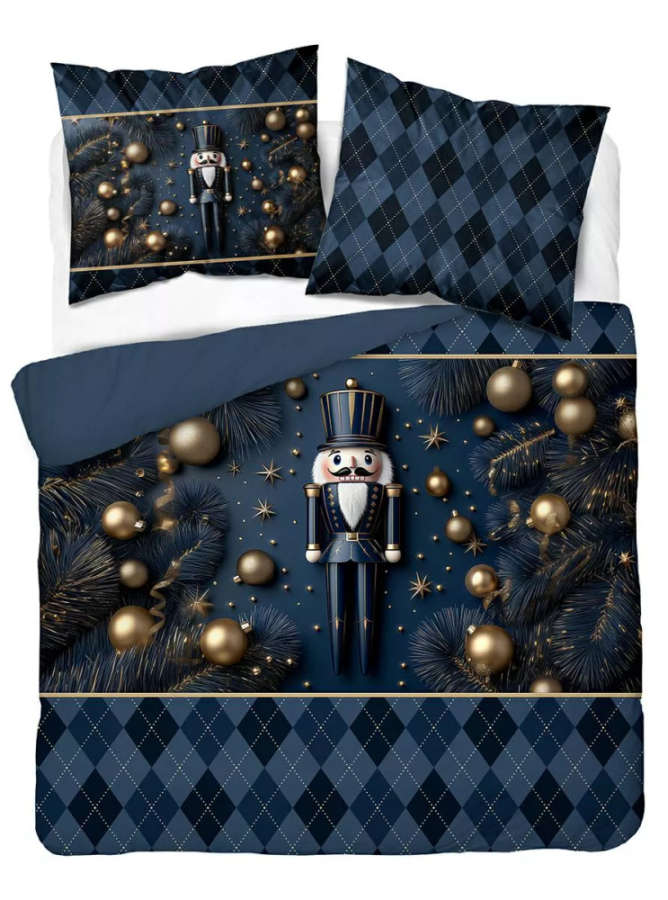5823 A Christmas Dreams ropa de cama de algodón Detexpol azul marino con Cascanueces - Juego de Navidad 100% algodón