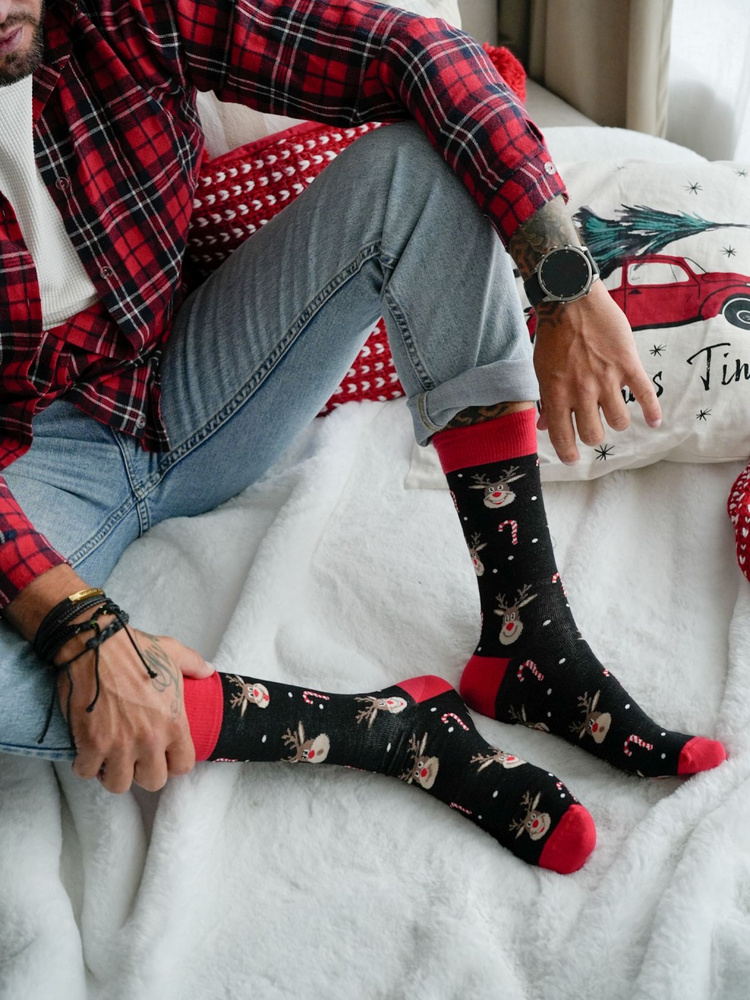El modelo está decorado con un reno colorido y festivo que crea un ambiente alegre e invernal. Los calcetines son perfectos para el día a día, pero también como regalo de Navidad: prácticos y llenos de humor.