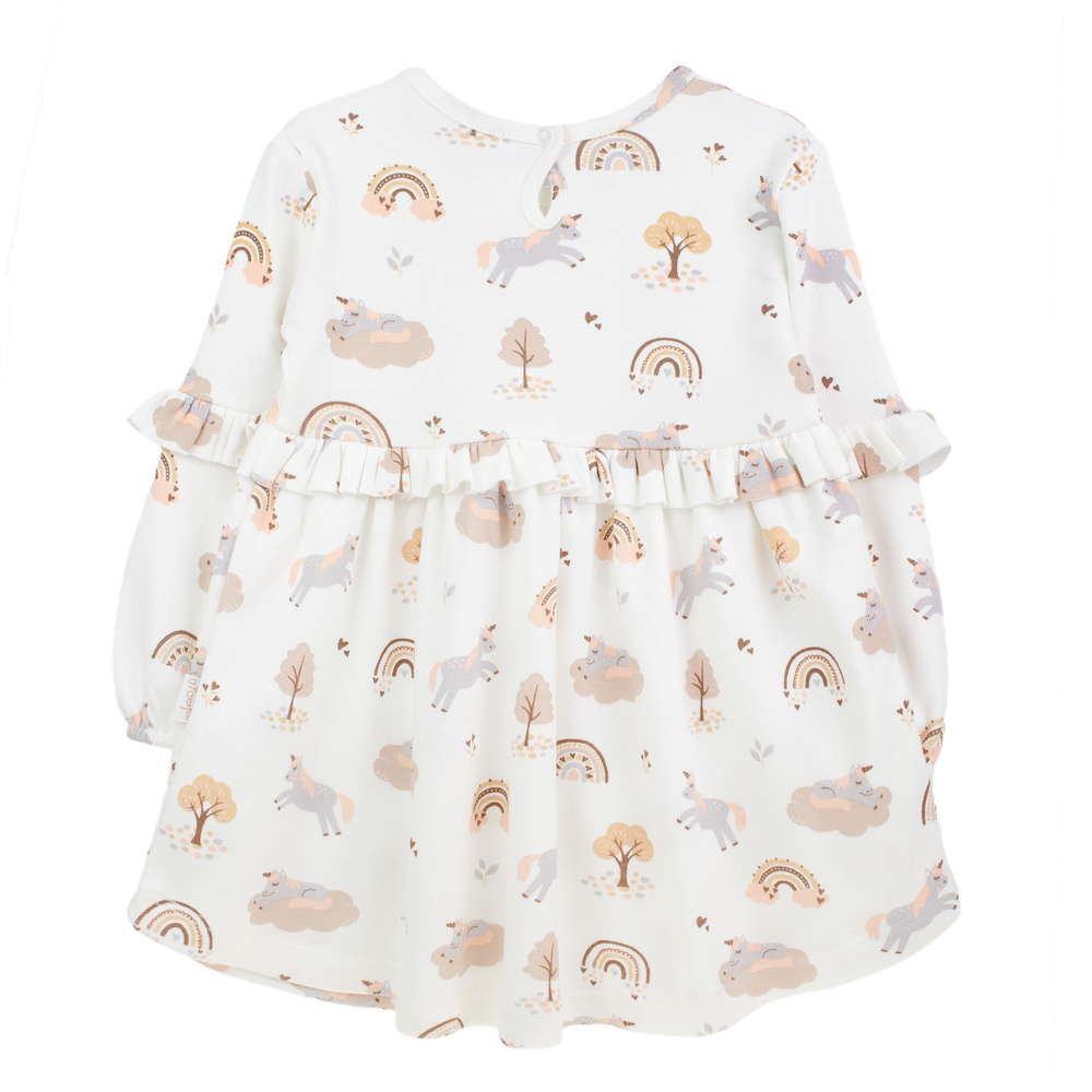141970 Vestido de manga larga Nicol - algodón crema con unicornios