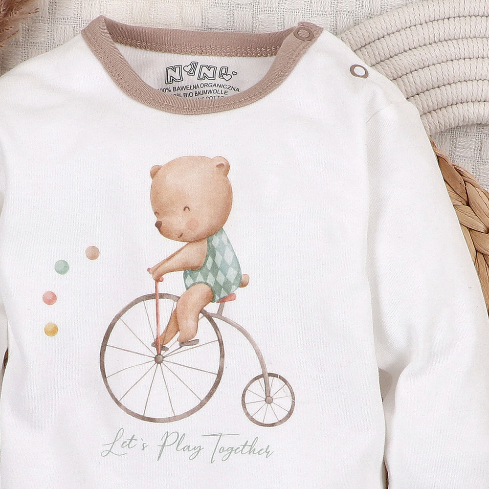 • Suave y seguro body Circus para bebé de Nini. Fabricado en Polonia con algodón 100% orgánico, antialérgico y respetuoso con las pieles sensibles. Impresión digital duradera y cierres sin níquel.