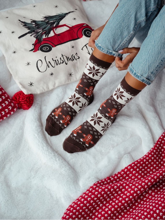 • Calcetines de colores 1283-040 Milena decorados con motivos de galletas navideñas. Fabricado en algodón de alta calidad, ideal como regalo para la temporada de invierno.