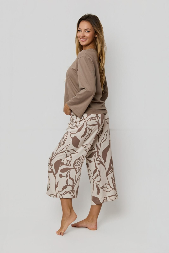 Pijama Mujer Luna PS75 Mefemi by Nipplex mocha - Camiseta Algodón + Pantalón Viscosa 7/8 | Confort y Estilo Premium