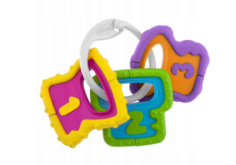 - El sonajero-mordedor 2 en 1 Keys de Chicco es un colorido juguete que alivia las encías doloridas durante la dentición y desarrolla al mismo tiempo los sentidos del bebé. Fabricado con materiales suaves y seguros, ideal para masticar, masajea las encías