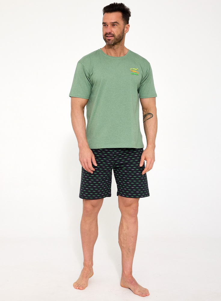 • Cómodo pijama de hombre Cornette Crocodiles con camiseta de manga corta y pantalón corto estampado. Materiales transpirables, libertad de movimiento y estilo moderno: pídelo ya!