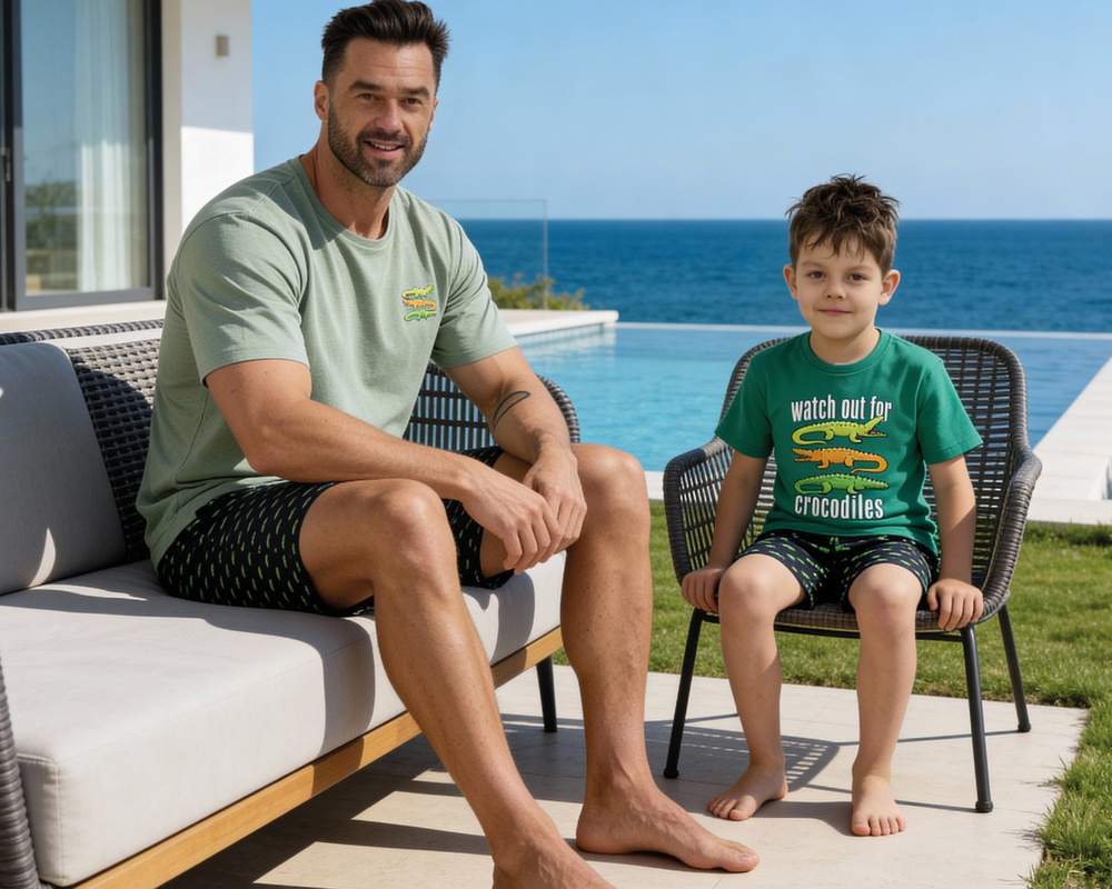 326/202 Pijama de hombre Cornette Crocodiles 2 - Algodón | Manga corta + Pantalones cortos | Dormir cómodo | Estampado de moda