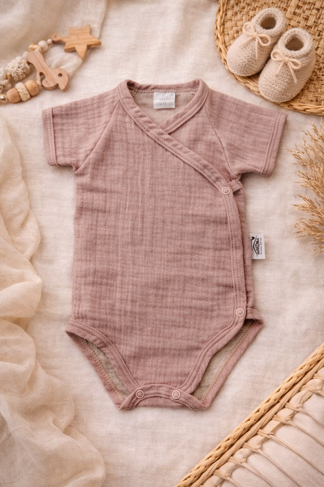 Body de muselina Just Muslin 03235KR Makoma rosa- manga corta, sobre, 100% algodón