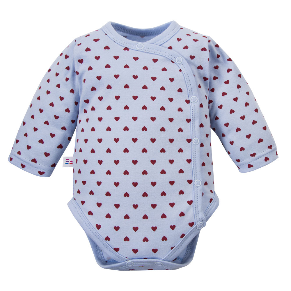 Body bebé Love Eevi azul con corazones 100% algodón, apertura completa
