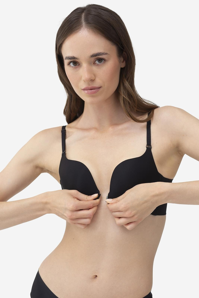 Las copas termoformadas elevan el busto y lo dirigen suavemente hacia el centro, creando un efecto más lleno y redondeado. El centro profundo lo hace ideal para vestidos y tops con escote pronunciado. La construcción push-up proporciona un aumento visual notable, pero con un acabado natural y elegante.
