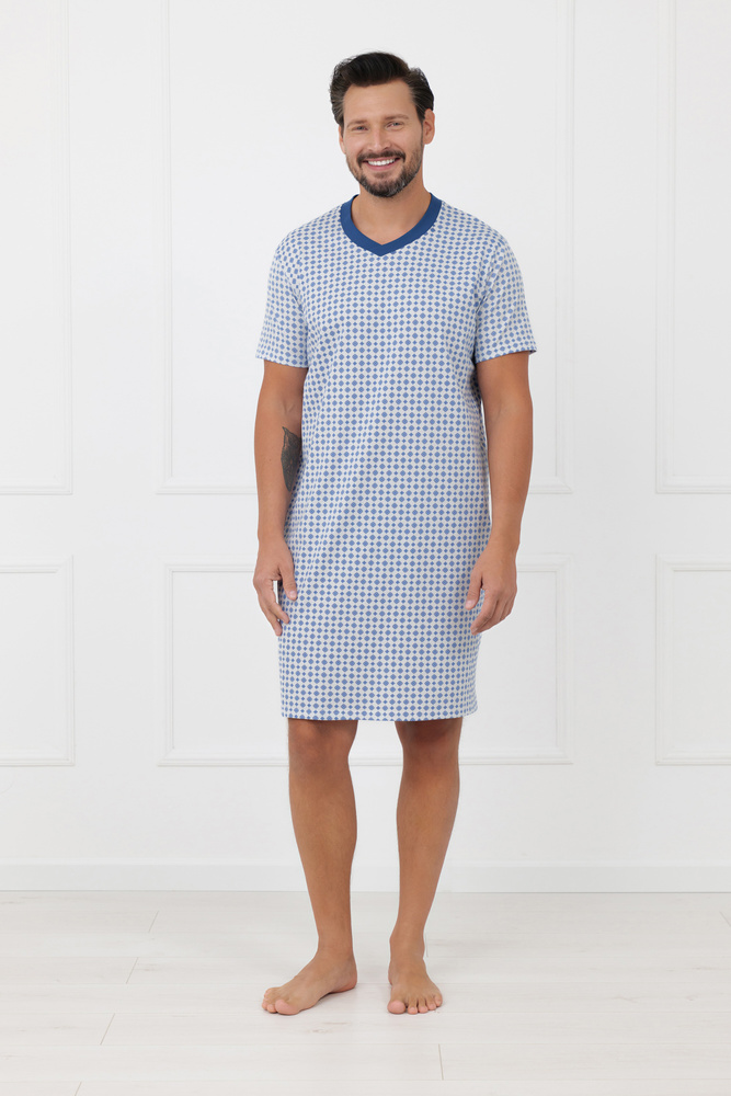• Camisón de hombre clásico de algodón natural diseñado para un descanso cómodo. El modelo Niger Italian Fashion con manga corta y escote en V ofrece transpirabilidad, libertad de movimiento y comodidad para dormir.