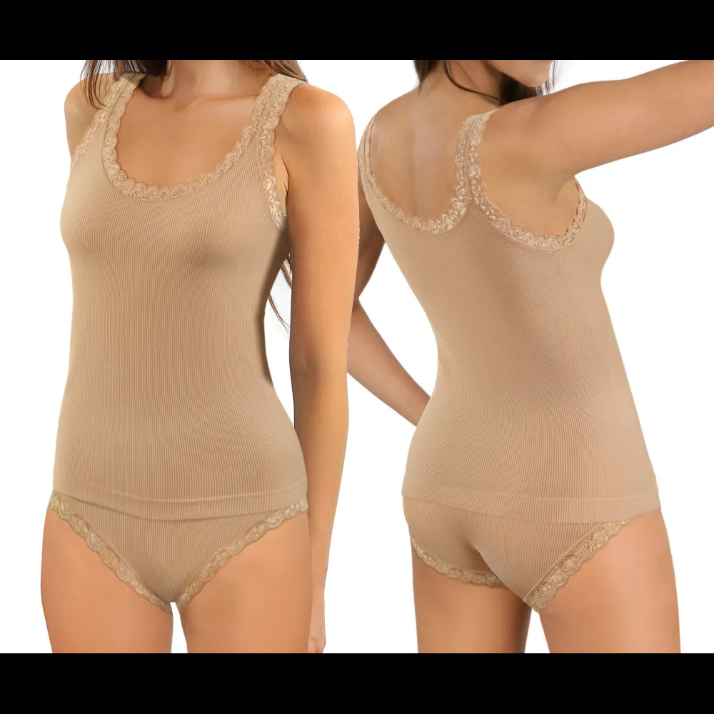 Responde a búsquedas como: camiseta mujer sin costuras, top mujer elástico con tirantes, camiseta básica con encaje, ropa interior femenina cómoda diaria.