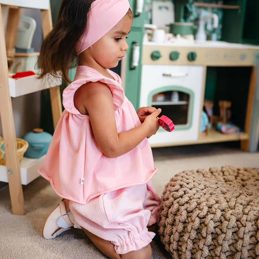¿Para quién es ideal? Para bebés y niñas pequeñas cuyos padres buscan ropa cómoda, transpirable y funcional para el verano y el día a día. Para elegir la talla, se recomienda guiarse por la altura de la niña. Para mantener la calidad, lavar a 30°C y evitar temperaturas altas de secado.