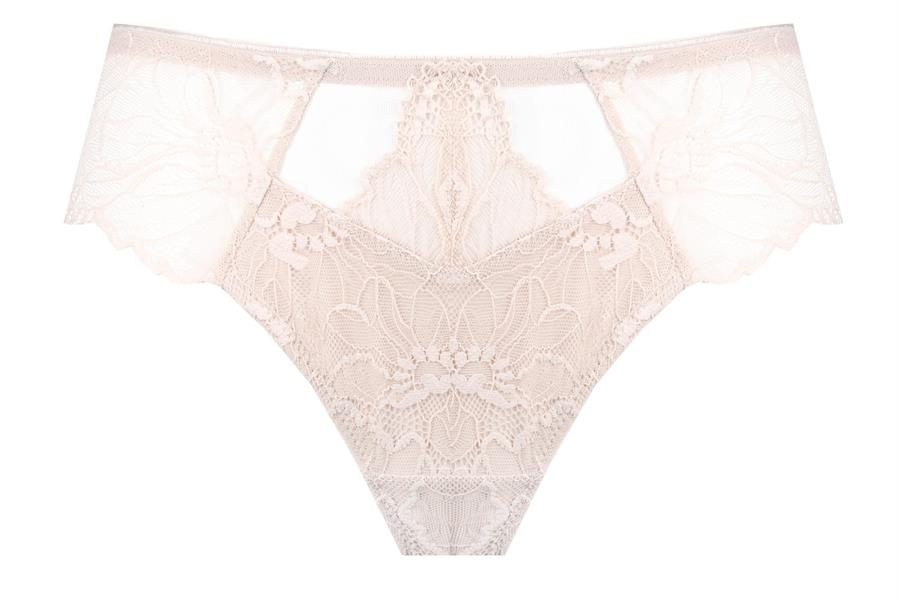 El encaje suave y elástico se adapta delicadamente a la forma del cuerpo, sin apretar ni dejar marcas en la piel. Gracias a esto, las braguitas se ajustan de manera natural y no se notan incluso bajo ropa ajustada. El color beige las hace prácticamente invisibles bajo prendas claras – perfectas para llevar con vestidos, faldas o pantalones.