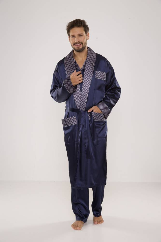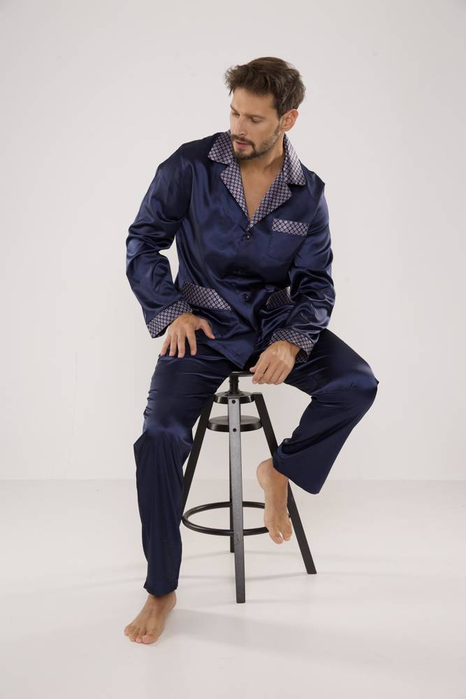 939 Pijama de satén para hombre - azul marino