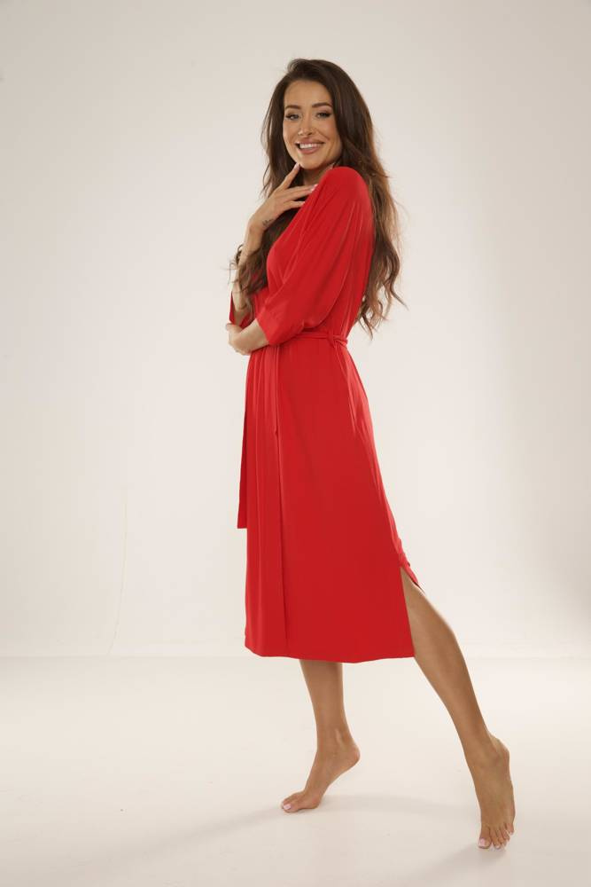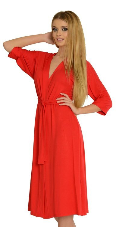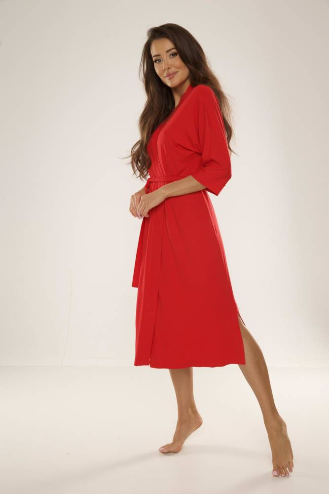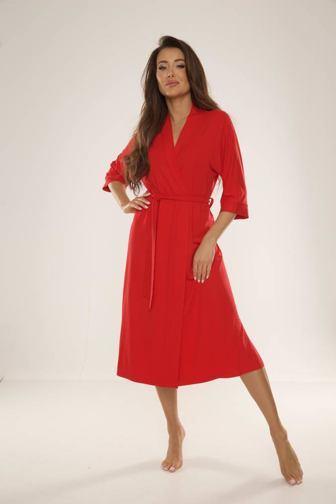 • Elegante bata de mujer 942 Visa de De Lafense fabricada en viscosa de alta calidad. El corte largo, la manga 3/4 y la cintura crean un look femenino y clásico.