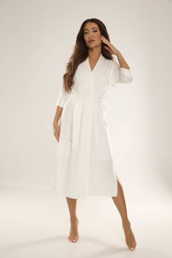 • Elegante bata de mujer 942 Visa de De Lafense fabricada en viscosa de alta calidad. El corte largo, la manga 3/4 y la cintura crean un look femenino y clásico.