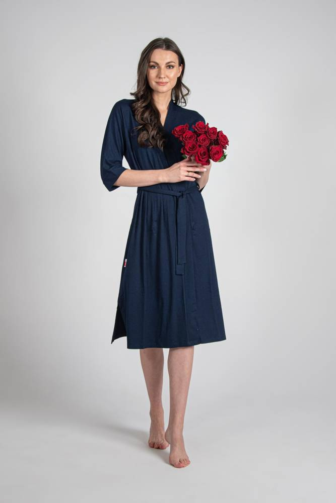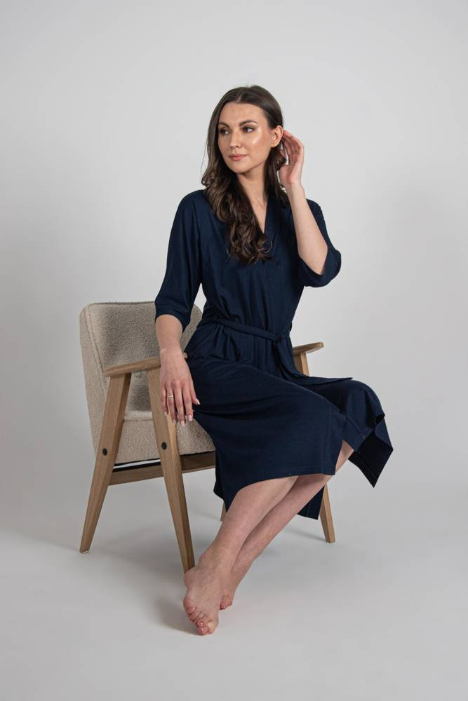 • Elegante bata de mujer 942 Visa de De Lafense fabricada en viscosa de alta calidad. El corte largo, la manga 3/4 y la cintura crean un look femenino y clásico.
