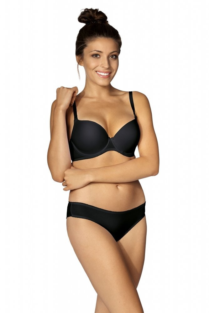 Elegante sujetador beige con copas moldeadas con relleno de gel que sujetan y estabilizan magníficamente el pecho. El corte del sujetador recoge los pechos por los lados y les da una forma redondeada, acentuando el escote. Un delicado lazo entre las copas añade un toque encantador. Tirantes desmontables.